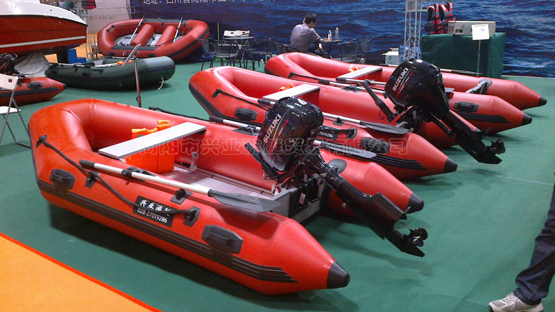 興業(yè)游艇公司生產(chǎn)的鋁合金底橡皮艇具有可靠的安全性,因整艇的充氣浮管被隔成